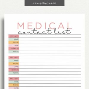 A structured document designed for easy recording and access of physician information offers a centralized repository for essential medical contacts. Its primary purpose is to provide a readily available resource containing vital details such as names, phone numbers, addresses, and specialties, facilitating prompt communication and efficient healthcare management.